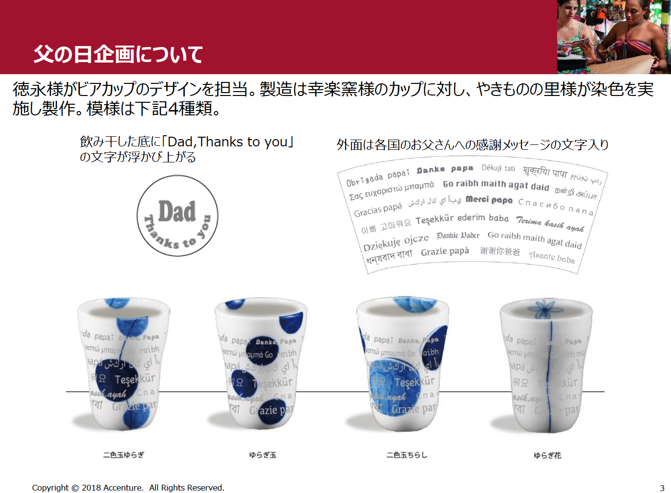 外側には各国のお父さんへの感謝のメッセージが描かれています。